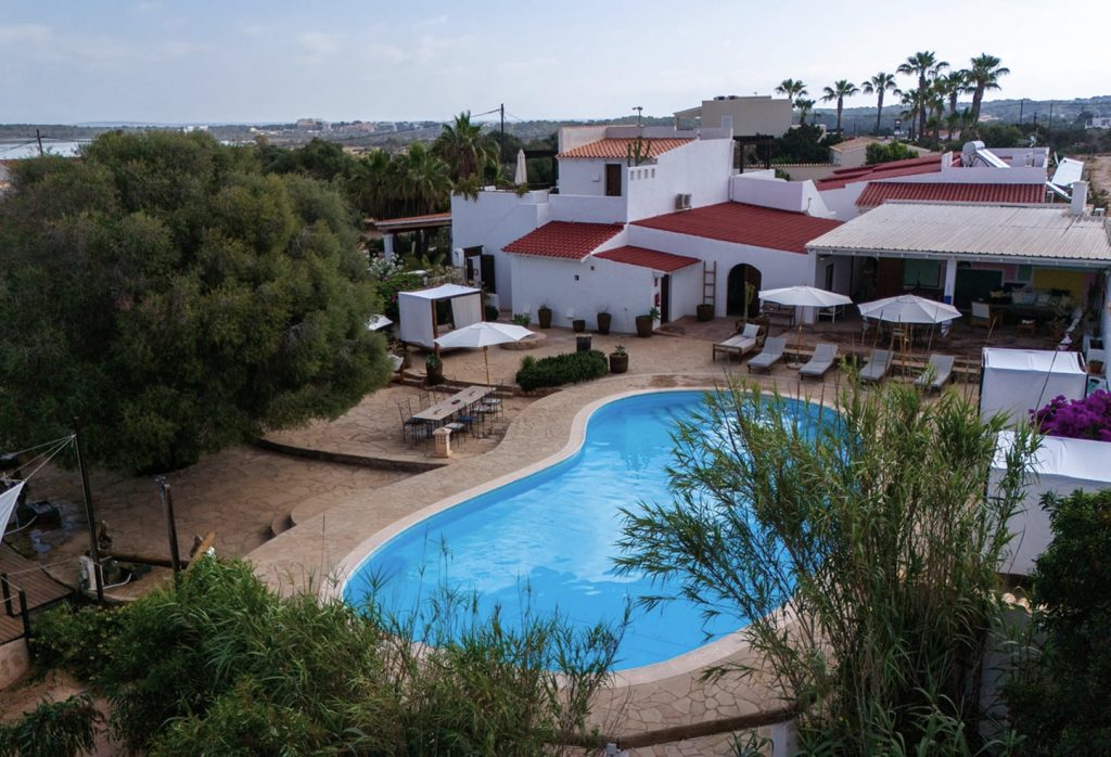 La Masía tiene raíces profundas en la historia de la isla. Nació como una casa payesa y en los años 60 se transformó con apartamentos y pistas de tenis. Durante los 80 y 90 fue uno de los puntos más animados de Formentera: el famoso John’s Pub, un restaurante balinés y un espacio de encuentro para locales y visitantes.